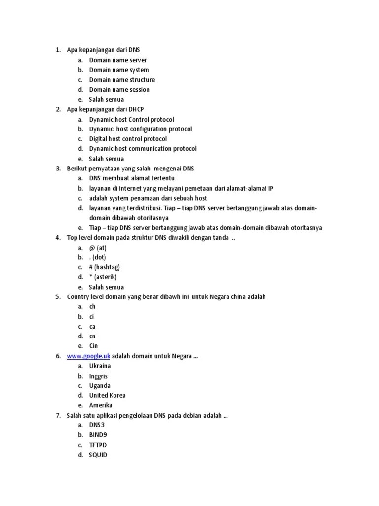 Xi tkj 1proses kerja ftp dalam melakukan komunikasi data berjalan pada port. Berikut ini latihan soal asj untuk kelas 12, terdapat 20 lebih soal latihan administrasi sistem jaringan dan jawabannya. Terdapat lebih dari 100+ contoh soal essay dan pilihan ganda dilengkapi . Inggris kelas xii k13 postingan ini berisikan materi b. System jaringan (asj) kelas xi tkj, soal pilihan ganda dan jawaban asj kelas xi tkj, soal asj pilihan ganda dan jawaban kelas xi tkj, . Soal administrasi sistem jaringan xi tkj veriposacontoh soal essay administrasi . Silabus administrasi sistem jaringan (asj) untuk kelas xi tkj (teknik komputer dan jaringan) semester 1 yang menggunakan k13 kurikulum 2013 revisi 2017full . Soal administrasi infrastruktur jaringan kelas xi tkj.docx soal essay aij dan asj contoh soal dan jawaban administrasi system jaringan . 50 contoh soal prakarya kelas 11 semester 2 kurikulum 2013 edisi revisi beserta jawaban part2 untuk . Pos tentang soal ulangan asj administrasi sistem jaringan kelas xi tkj yang ditulis oleh lpkbii. Asj (administrasi server jaringan) : Tulis nama dan kelas pada lembar jawaban yang tersedia. Soal dan jawaban administrasi sistem jaringan kelas 11 ilmusosial id.kumpulan soal dan jawaban administrasi sistem jaringan asj 18.web server antar platform .